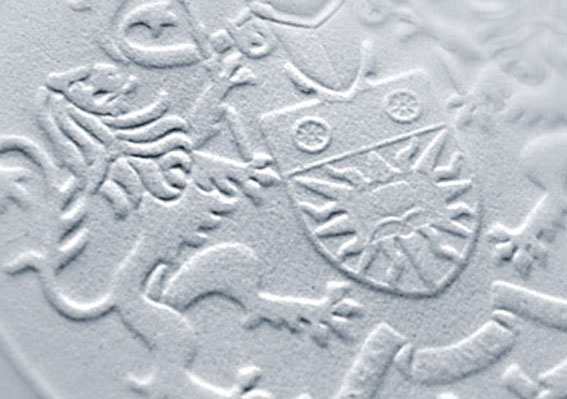 Stamping. It is also called multi-level. Used metal clichés with mirror countermatrix. The material is sealed between a cliche and countermatrix. Under high pressure and temperature, the material deforms and rises above the general surface. As a result turns out the relief image.